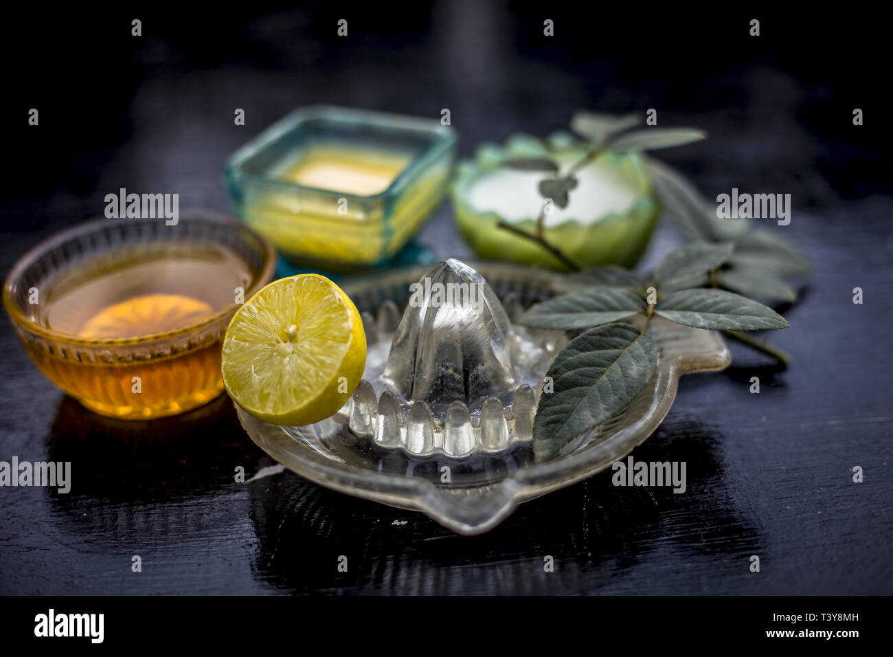 Original Resolution: 1300x956 Close Up Of Skin Whitening Therapy I E Milk Lemon And Honey On Wooden Surface In A Glass Container Stock Photo Alamy It's really easy and pretty effective if you use it often enough, but note that lemon can make your skin sensitive so you'll need to be careful. 1200x799 - If you have dry skin, use a tablespoon of honey or four tablespoons of milk instead of lemon.